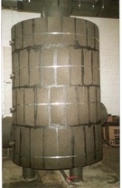 Скорлупы и сегменты, соответствующие по форме утепляемой поверхности, должны укладываться в шахматном порядке относительно друг друга и предыдущего слоя. Первый слой укладывается «на сухую», и фиксируется клейкой лентой или стальными полосками. В зависимости от диаметра резервуара, может возникнуть необходимость в креплении первого слоя при помощи стальных полос. Второй слой должен укладываться, с нанесением на стыки PITTSEAL ® 444 или другой подходящей мастики. При применении мастики или адгезива, следует убедиться, что стыки хорошо подогнаны. Ни эта, ни иные мастики не должны применяться для заполнения чересчур широких швов, образовавшихся вследствие плохой подгонки. Второй слой следует всегда закреплять при помощи двух стальных полос на скорлупу или сегмент. Термоизоляцию днищ, люков и других специфических элементов также следует фиксировать стальными полосами. Эти полосы должны крепиться к несущим кольцам, приваренным к корпусу самого резервуара. Сегменты, соответствующие по форме утепляемой поверхности, должны укладываться в шахматном порядке. Нет необходимости укладывать блоки в шахматном порядке на днища резервуаров, или на другие специальные формы. Сегменты наклеиваются, и стыки заделываются при помощи PC® 88ADHESIVE. Необходимо временно укрепить сегменты лентами на время высыхания PC® 88ADHESIVE. Излишки адгезива, вытекающие из стыков, следует удалить до его застывания. При применении PC® ADHESIVE нет необходимости в дополнительном креплении с помощью металлических лент.